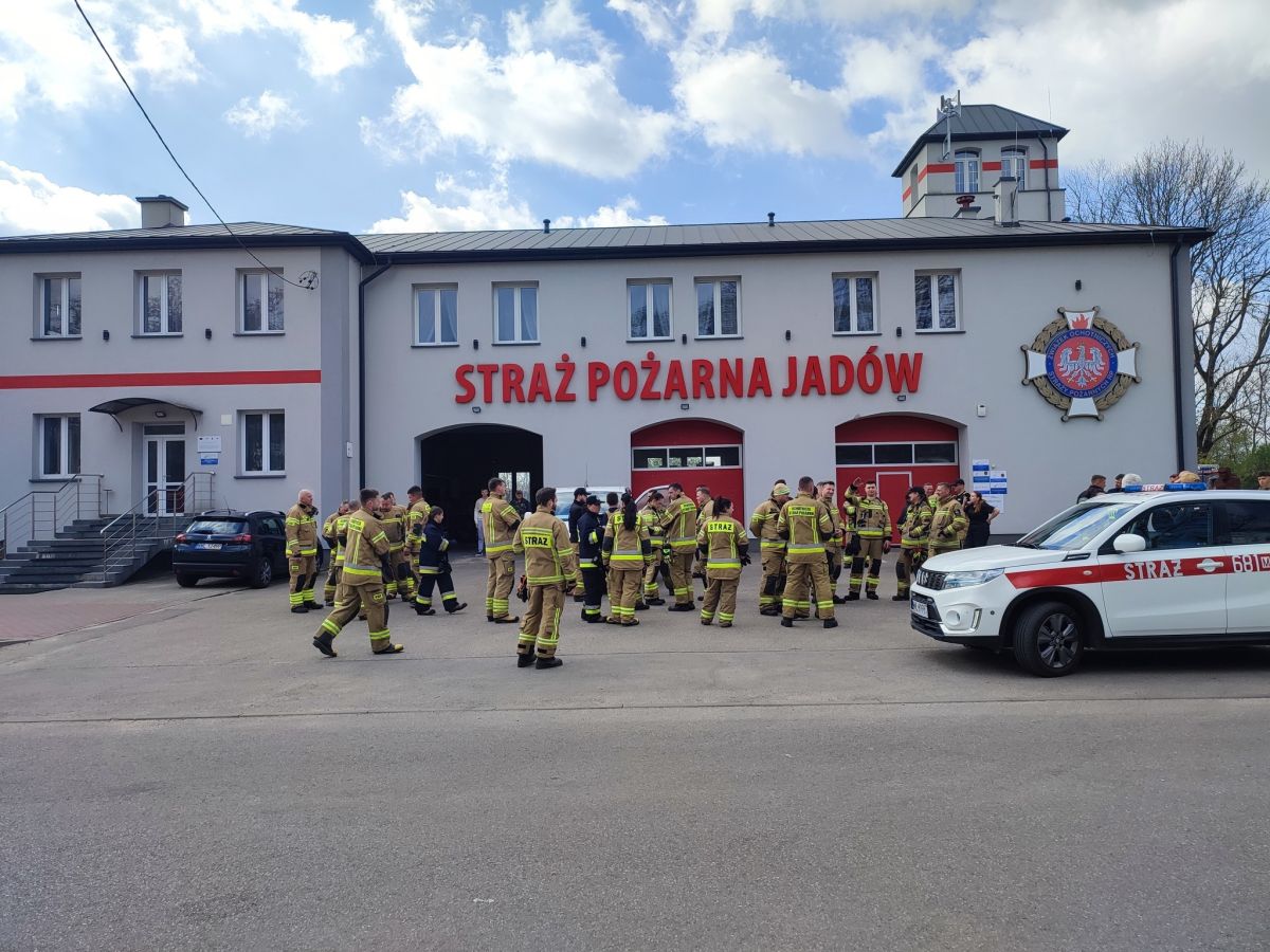 Miejsce koncentracji sił i środków było pod remizą STRAŻ Pożarna Jadów w ćwiczeniach uczestniczyły liczne jednostki PSP